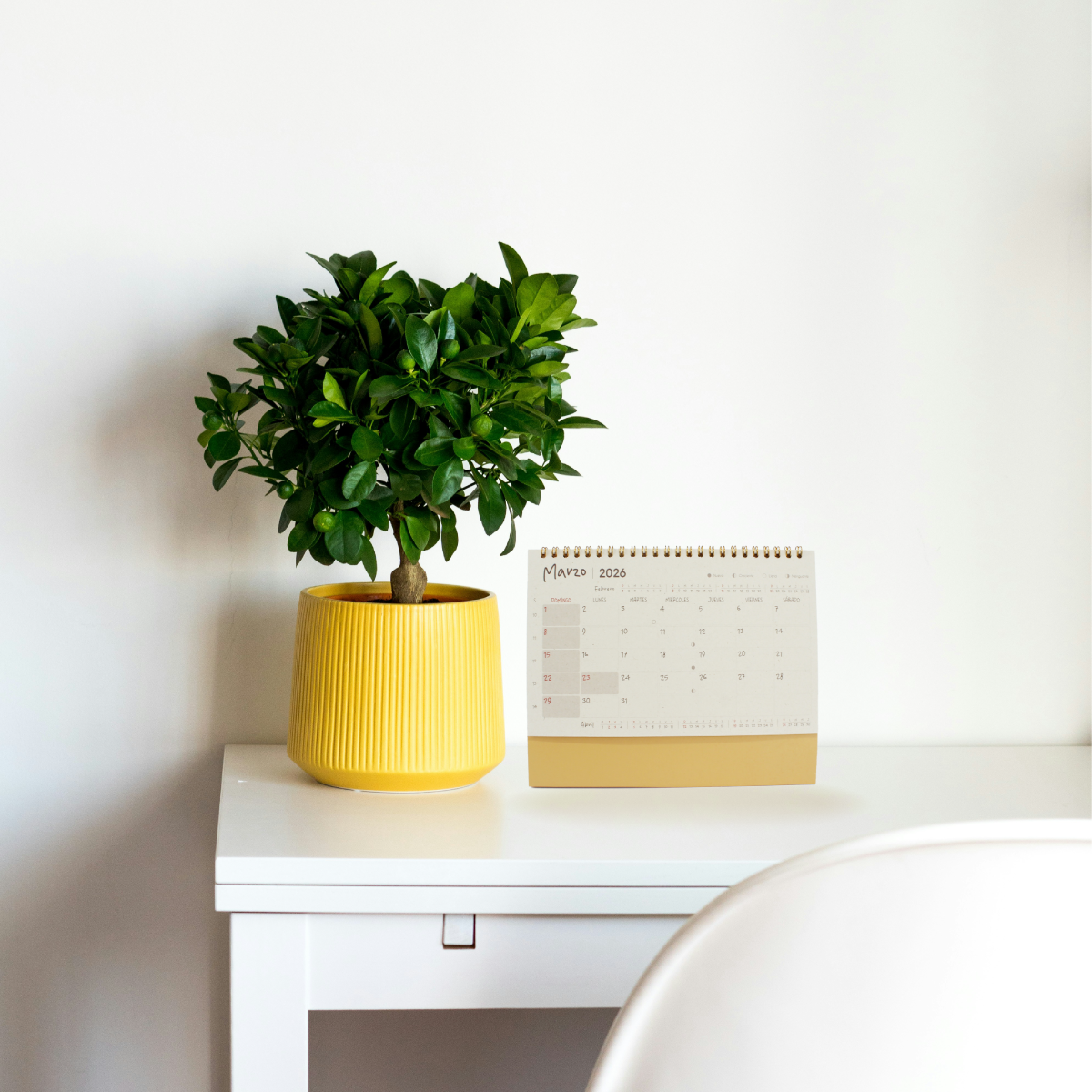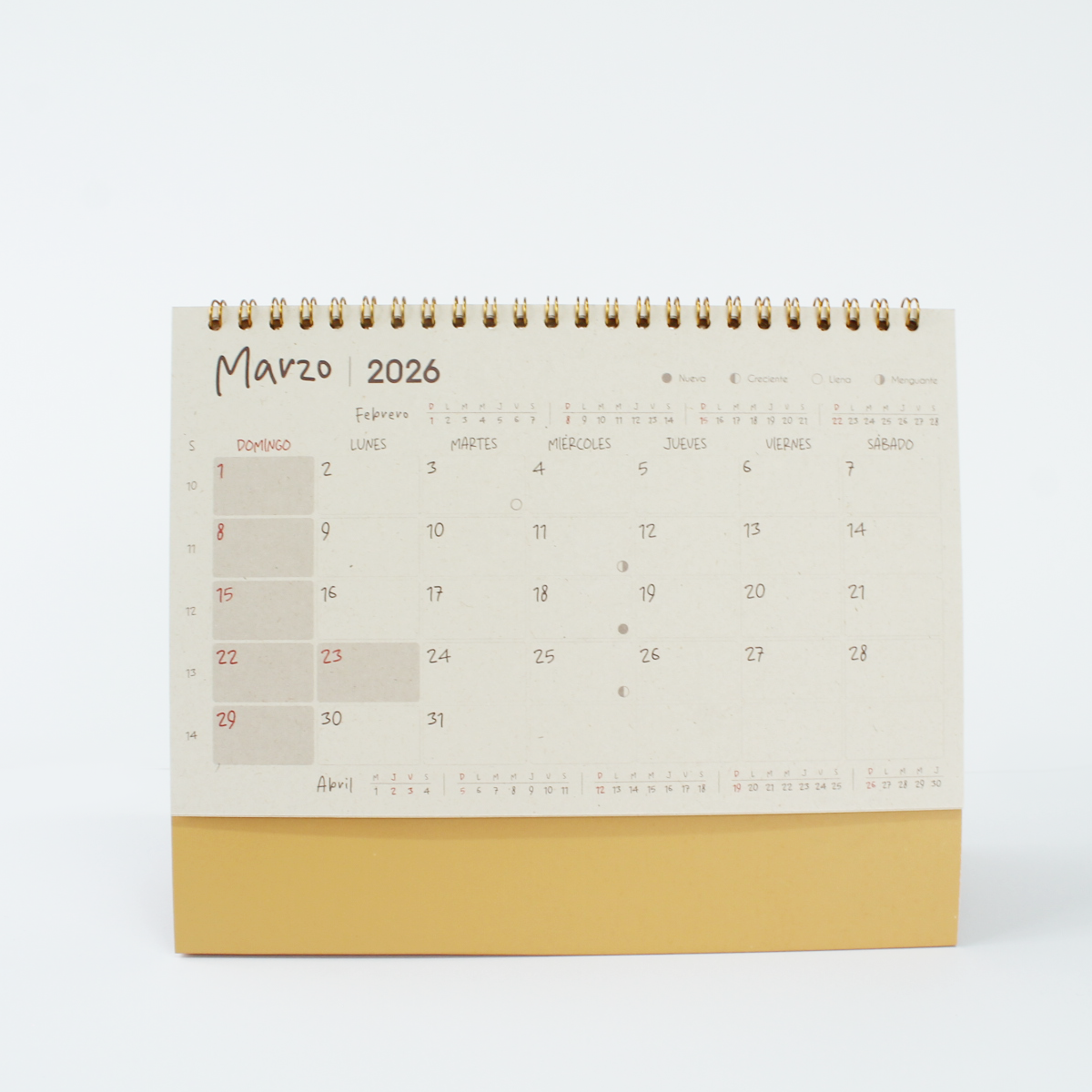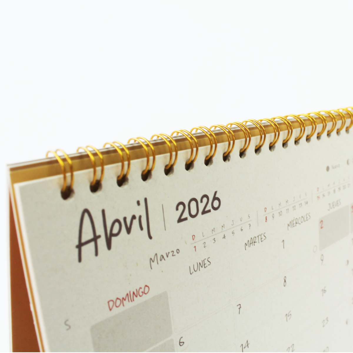 Nuestro planeador de escritorio anillado ecológico 2026, es la herramienta perfecta para la gestión del tiempo. Con cuadros amplios podrás anotar compromisos, celebraciones, reuniones y pagos. Ideal para conectarte con el presente.